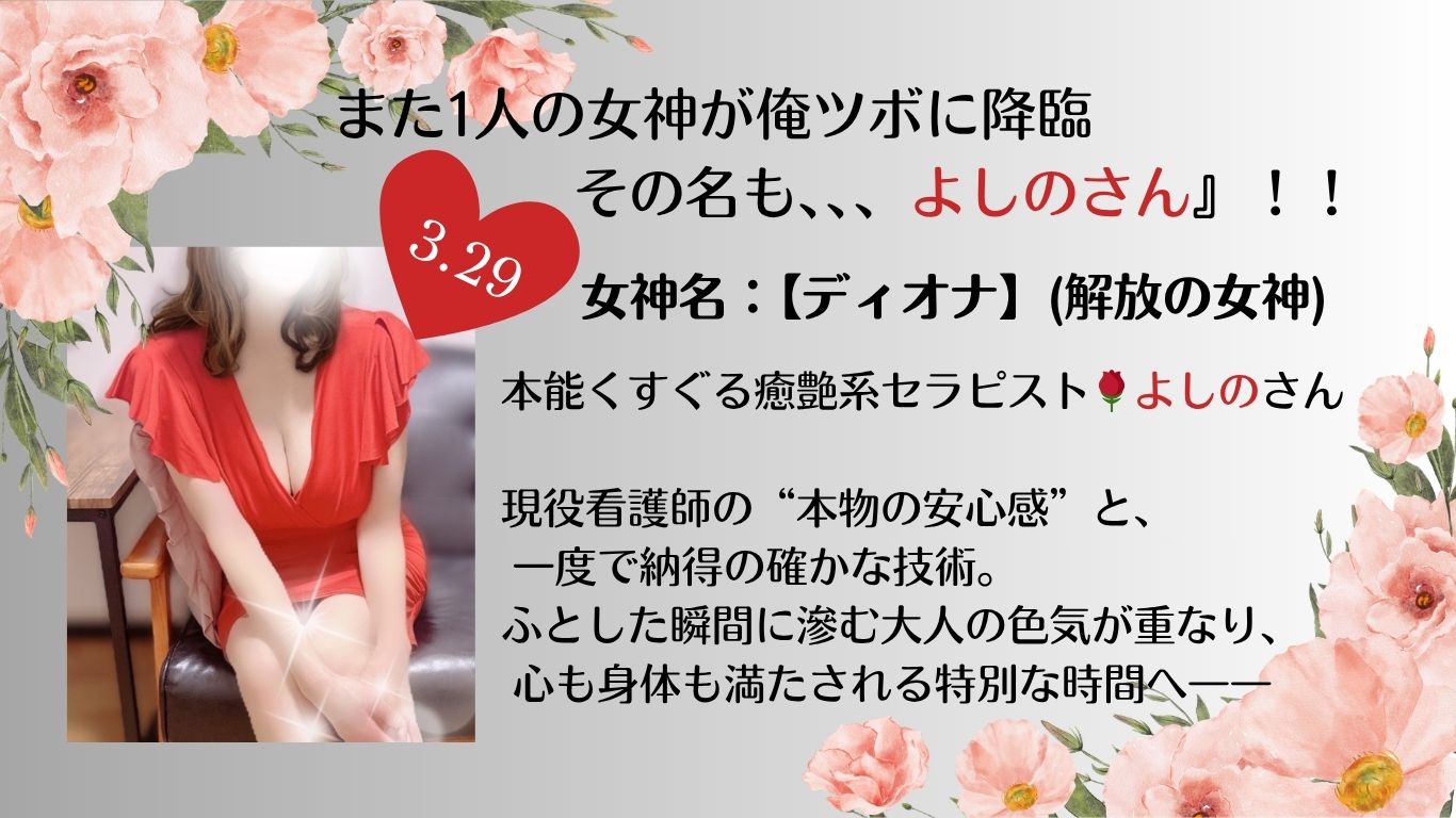 T155cm B93(F) W70 H92 まいこのご予約はこちら☚ 👑ランクアップセラピスト👑 ・女神名:パナケイア(癒しを司る女神) ・職業:ナンバーを操る魔術師 ・動物占い:愛情あふれるトラ ・血液型:O型 ・マイブーム:気持ちいいことへの探求、ハイキュー ・お客様へのメッセージ:まいこの重みをちょっと(?)感じる「ゼロ距離施術」を堪能してください♡ お店より:かなりぽっちゃりとした柔らかい雰囲気が魅力のお茶目なセラピストまいこさん!聞き上手で、お客様のお話にしっかり耳を傾けながら、オンリーワン施術を提供します。お客様の立場に立った心地よい空間づくりを大切にし、心も体もリラックスできるひとときをお届けします!